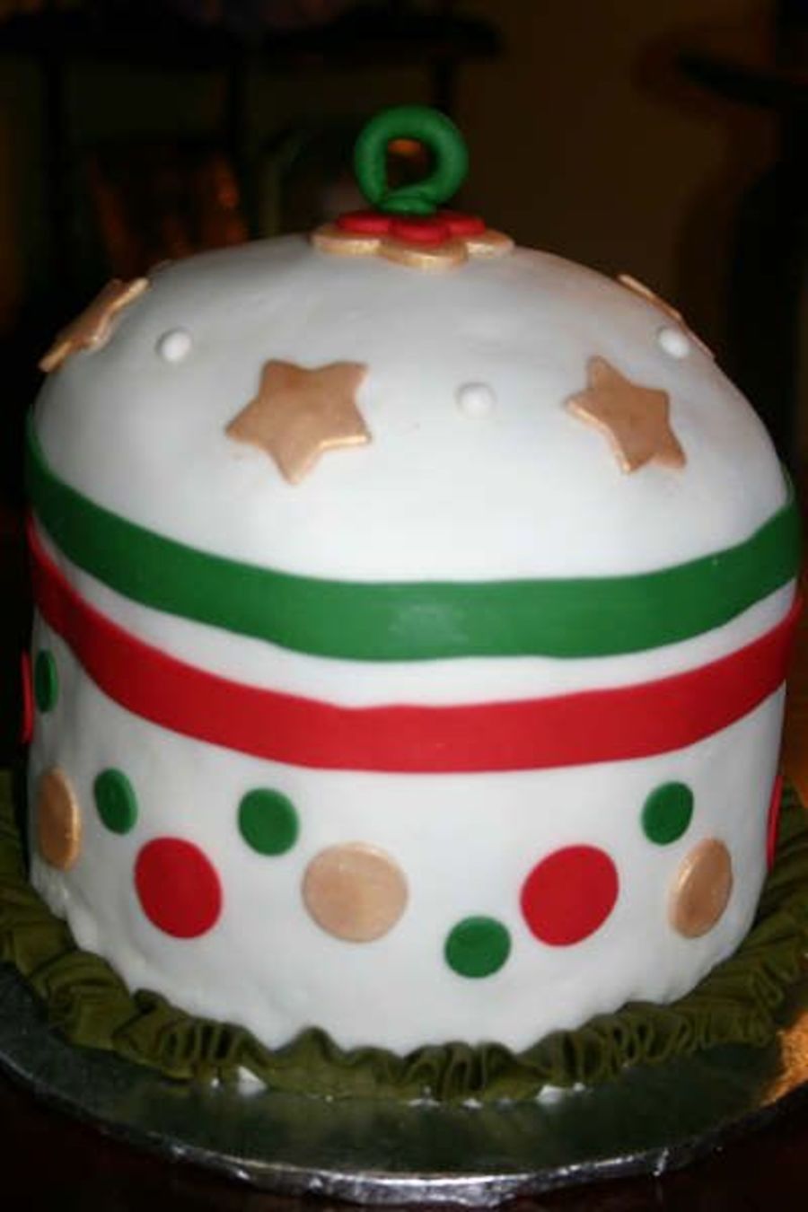 My first pannettone ornament my mother told me to try to make, and it turned out....the chocolate pannettone is easier to stick the fondant...
