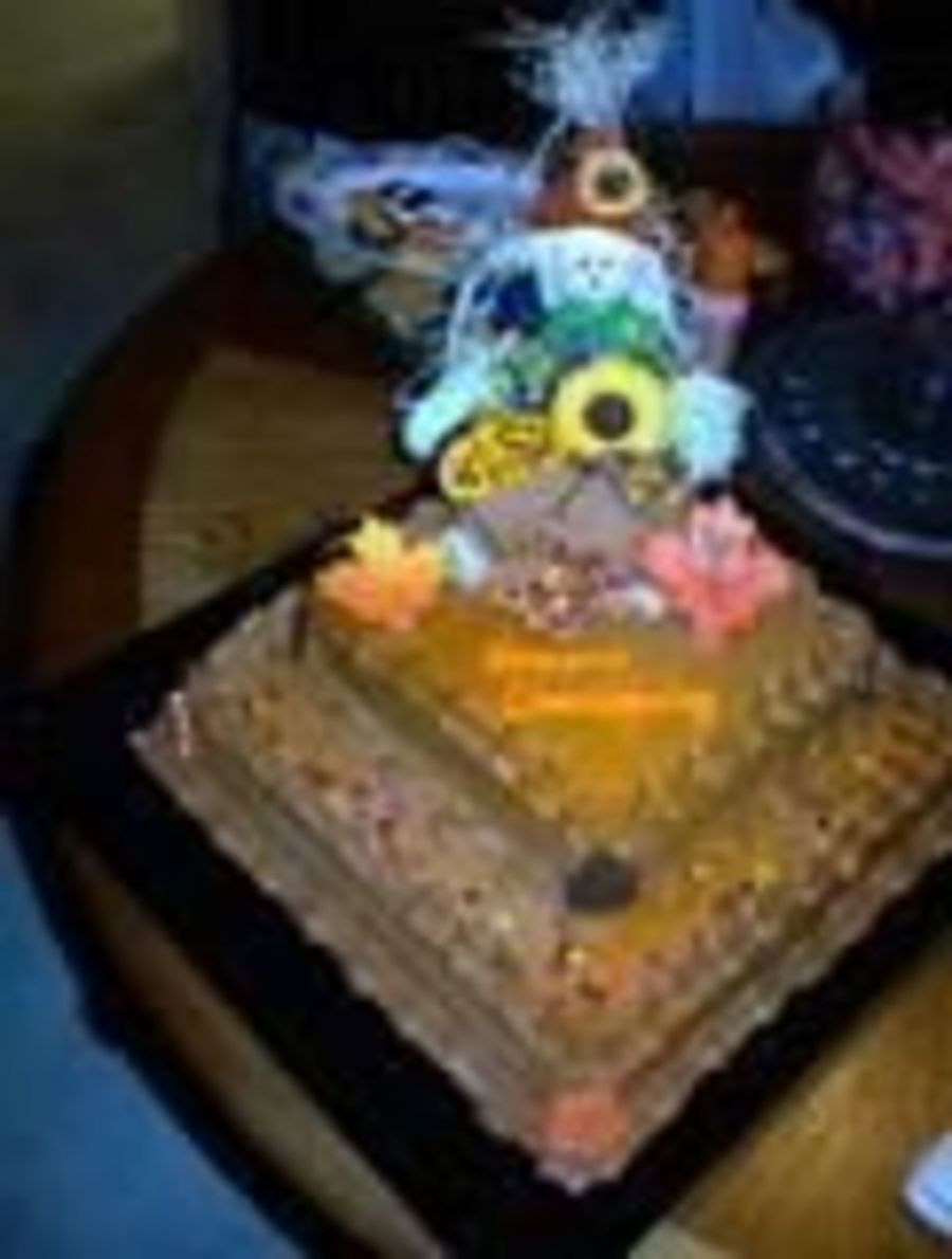 chocolate cake with maple buttercream and sugar cookie accents
