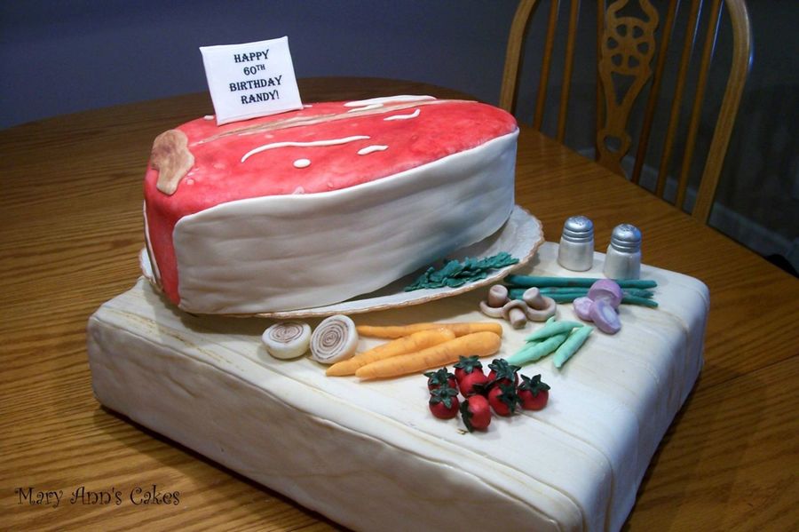 Heavenly white cakse filled with IMBC and covered with MMF. MMF vegetables and shakers. GP plate.