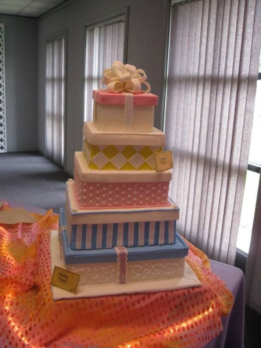 Dummy cakes for the special reception area at a Willy Wonka Junior production that my daughter was in. 14" - 6". MMF. Thank you so much Sugarshack for all the tips! I learned a lot and think this came out great. I also know that pitfalls of these cakes now and what to look out for next time. Thank you so much!
