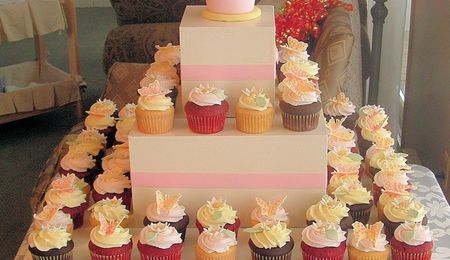 Fashioned from the bridal shower invitation. Gumpaste/fondant accents.