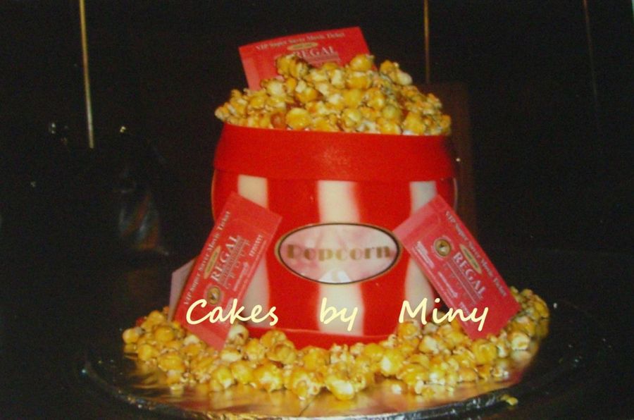 Real caramel pop corn, three 10 in stalked covered in fondant and airbrushed red.