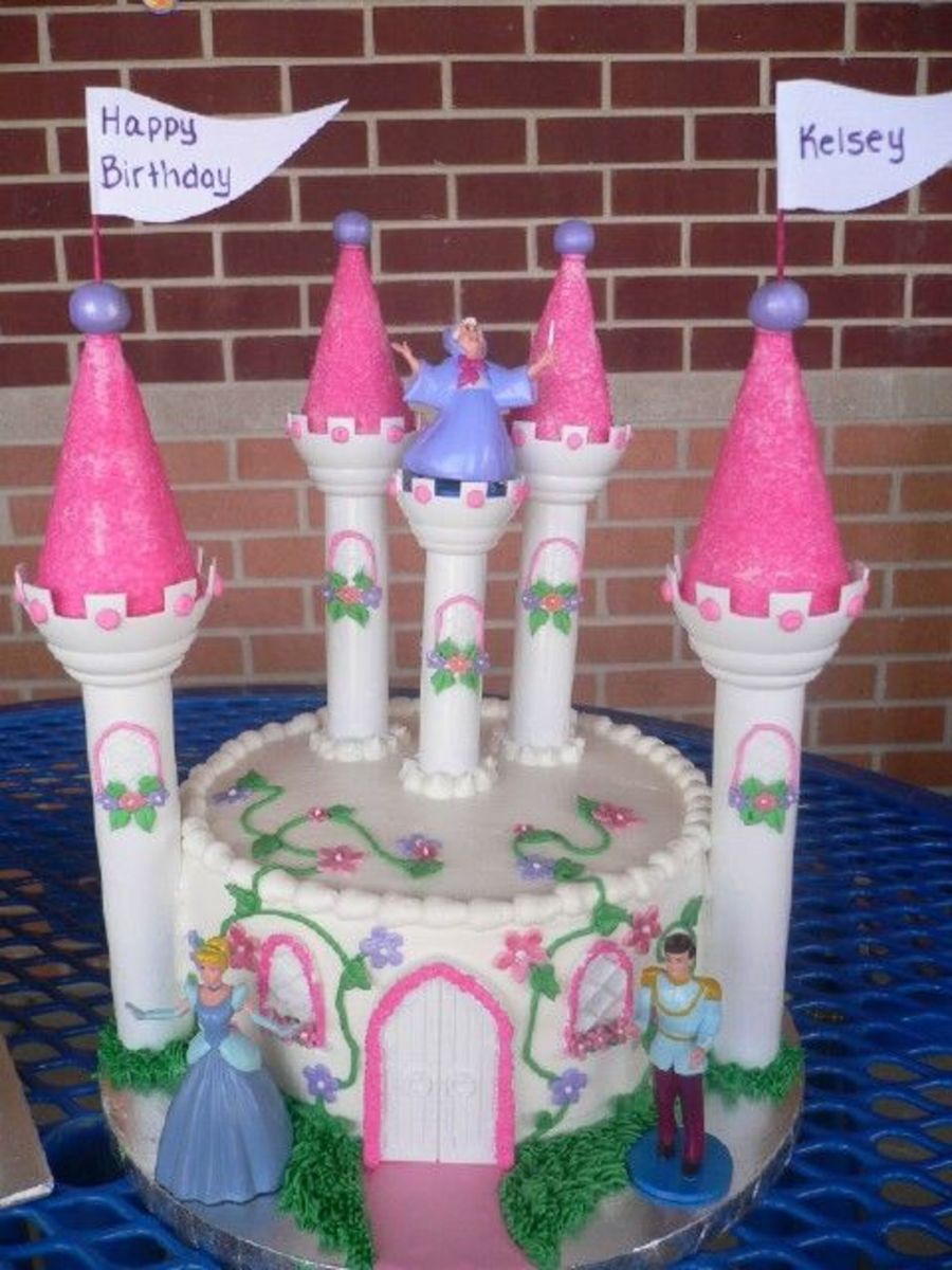9" round cake, Wilton Towers. MMF flowers, buttercream icing. Took different ideas from different castles Ive seen on here, no one person to credit.