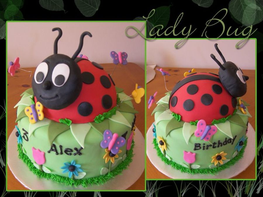 Lady bug cake. Design is similar to a few other cakes here on cc. They were wonderful cakes with the animated lady bug faces. Two 9" rounds with 1/2 ball cake. Face is made from rc treats covered in fondant. Cake is covered in fondant with fondant accents. Loved making it.