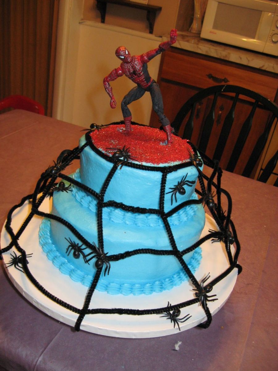 This was a last minute request from a friend. Orange creamcicle flavored cake with buttercream icing. I used pipe cleaners to make the web around the cake.