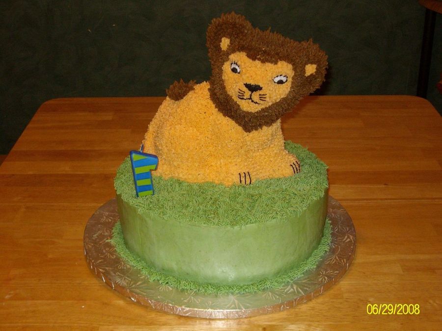 This is my baby's 1st birthday cake. The lion smash cake is the 1974 Lovable Animals pan by Wilton. Both cakes are covered in bc.