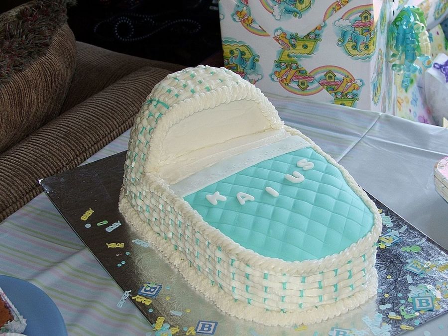 I made this for our first Grandchild. It's decorated in buttercream and fondant.