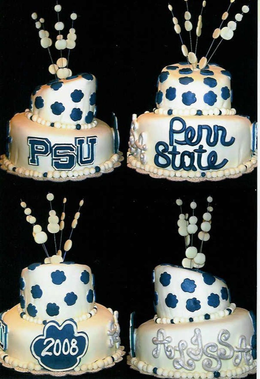 A collage of the 4 different views of my daughter's Penn State Graduation cake. She requested a topsy turvey design, so this was my first attempt at one.
