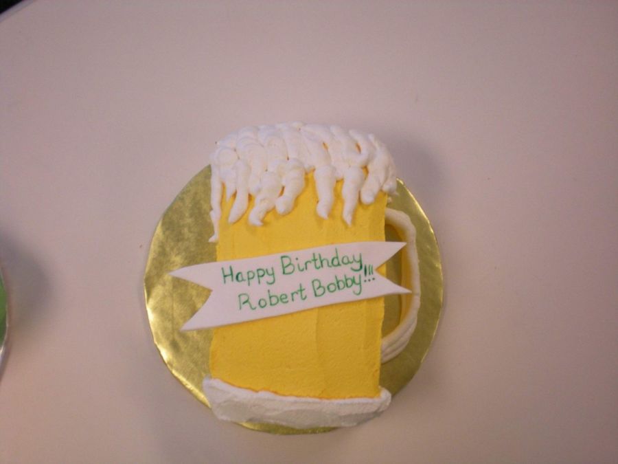 beer mug cake for a co-workers birthday. lemon cake with vanilla buttercreme frosting. hope you enjoy!