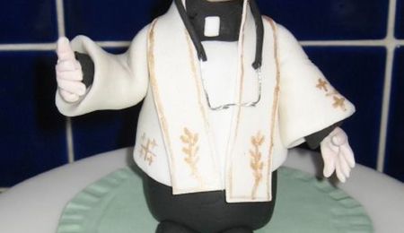 Cake made for a Deacon's ordination. Inspired by the many book cakes here on CC, but in particular cakedout's wonderful open bible cake. Rich fruit cake, with marzipan & fondant. I used an edible image for the right hand page, with a biblical passage special to the deacon on it. All other bits are done with modelling paste. It was a rather heavy 16"x24" cake! It served 180, and there was another 180 bits already chopped up & ready to go in the kitchen! Phew!