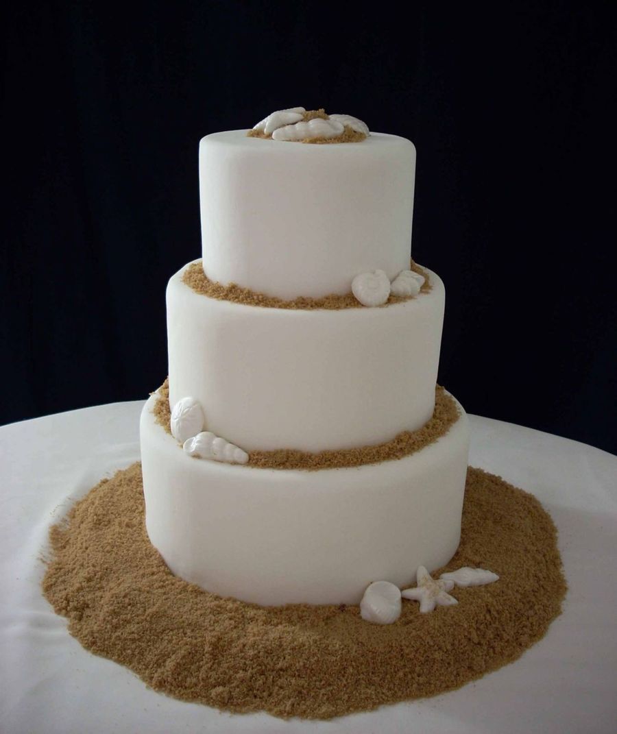 Sand is brown sugar shells are molded fondant painted with pearl luster. Nothing new. Next beach cake I will do some coral.