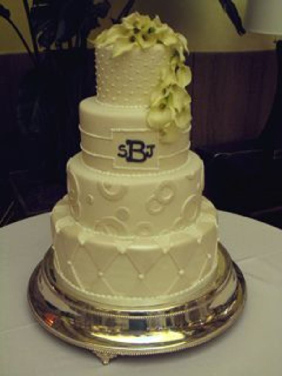 Fondant covered with fondant accents and fresh callas.