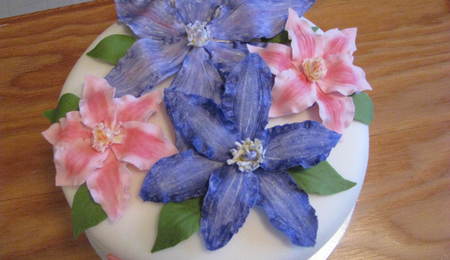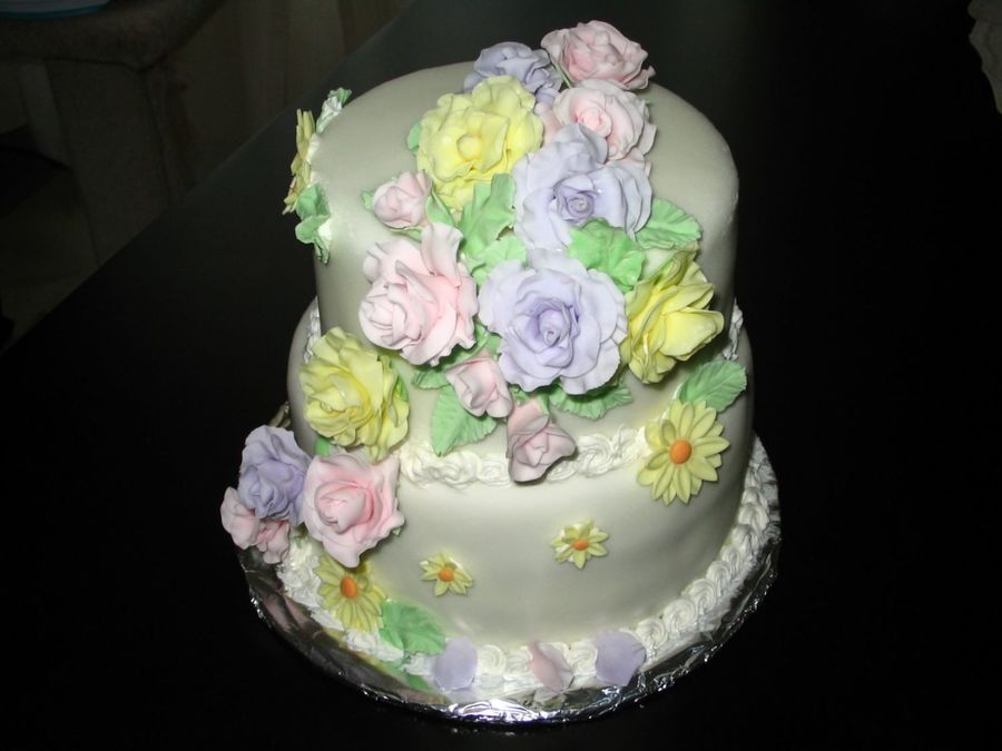 My first Wilton class cake, fondant and fondant/gumpaste flowers.