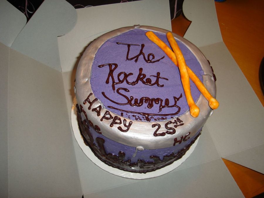 I made this for my sister who loves music, so I made a drum cake. Cake is funfetti cake with vanilla pudding filling. Buttercream with fondant accent and fondant drum sticks. I used melted choc. to write band names on top and around the cake. Thanks for looking.