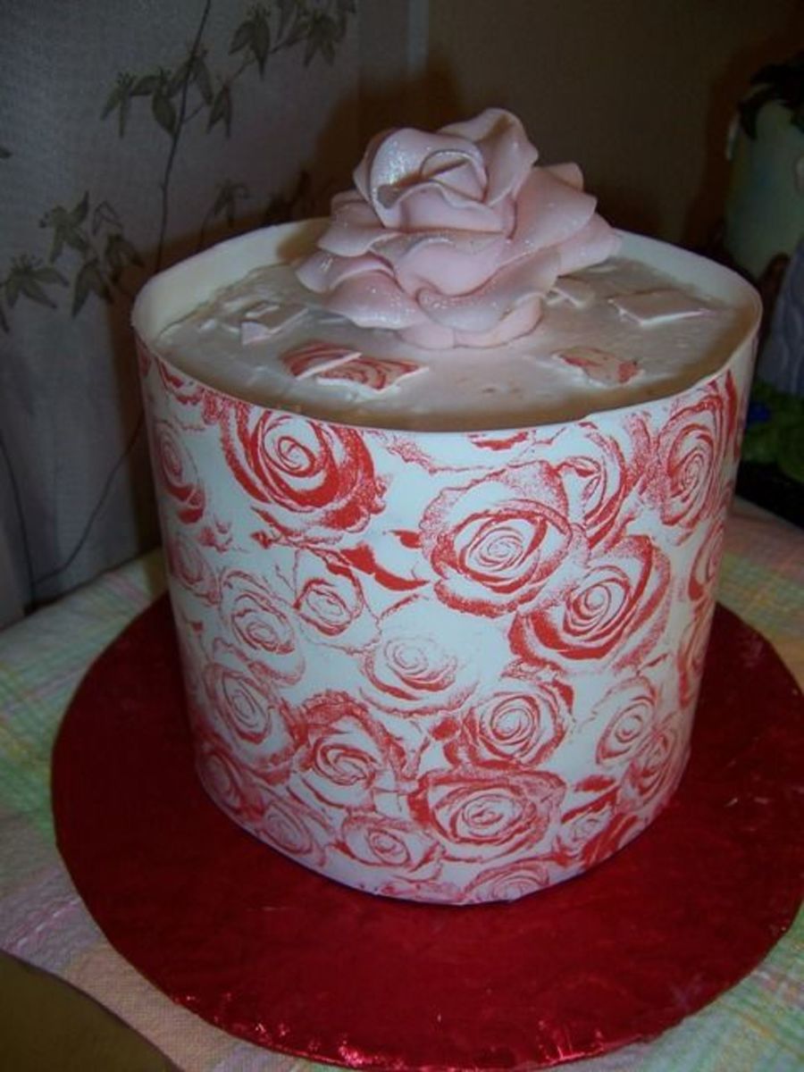 This is just a small cake with a chocolate wrap using a rose transfer sheet.