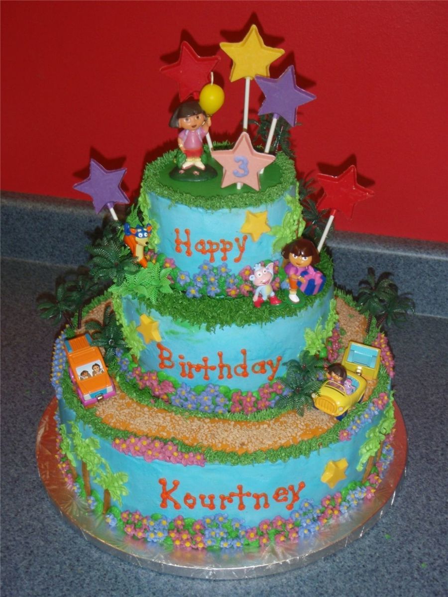 I made this cake for my granddaughter's 3rd b'day. It is all buttercream icing. The stars are candy made from candy melts.