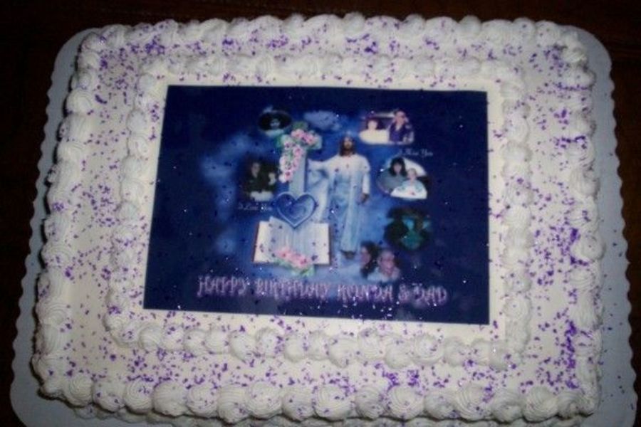 I was born on my dad's b day, always except 2 times we shared are party, our day...my dad passed away in 1996 but my birthday cake must always say happy b day dad & ronda...this cake has some of the photos of birthdays we shared.