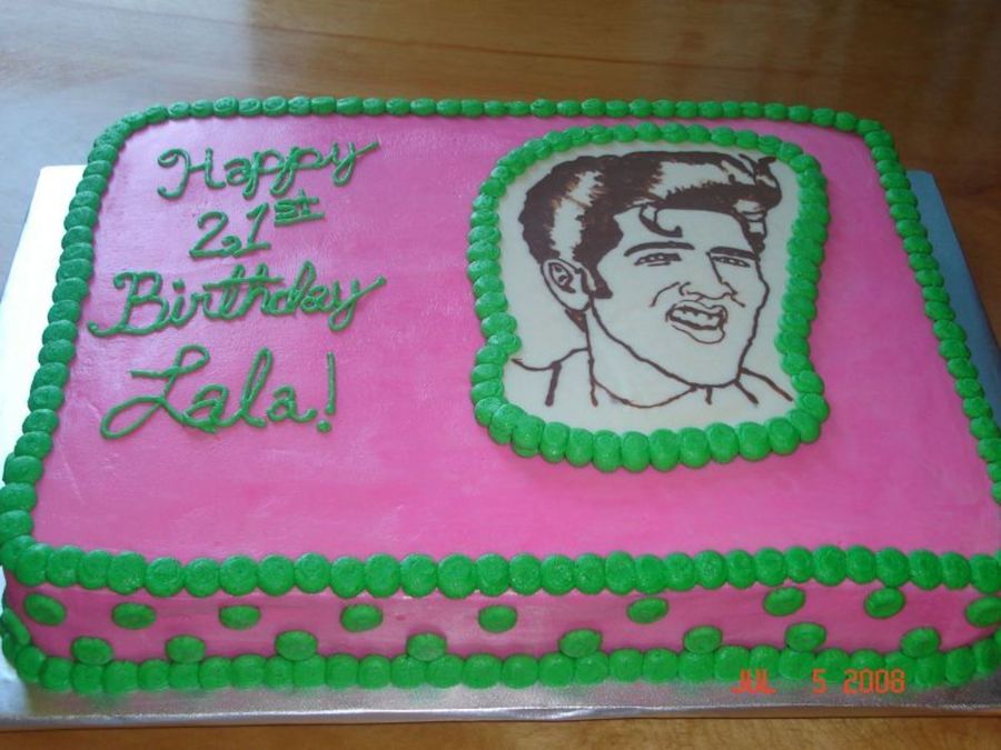 The customer ordered something pink, green and Elvis. I thought holy moly, what am I going to do? I saw a cake similiar with pink dots and knew that it would work perfectly. I am very happy with the way the CT came out.