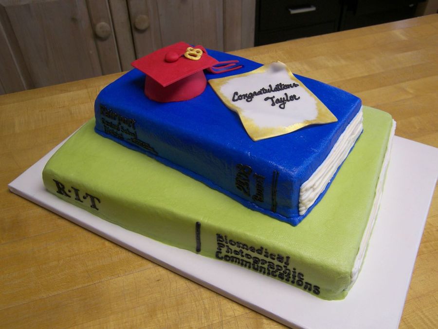 11 x 15 marble, 7 x 11 white, buttercream frosting. Graduation cap "diploma" are fondant.