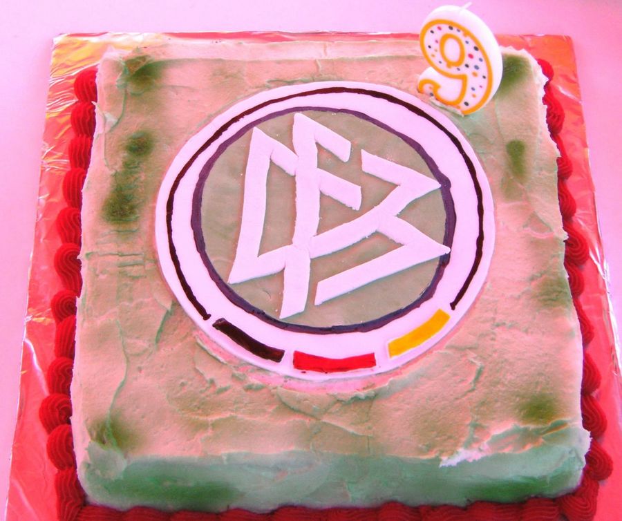 My son is a soccer fanatic. He wanted the DFB sign on his cake. (German soccer union).