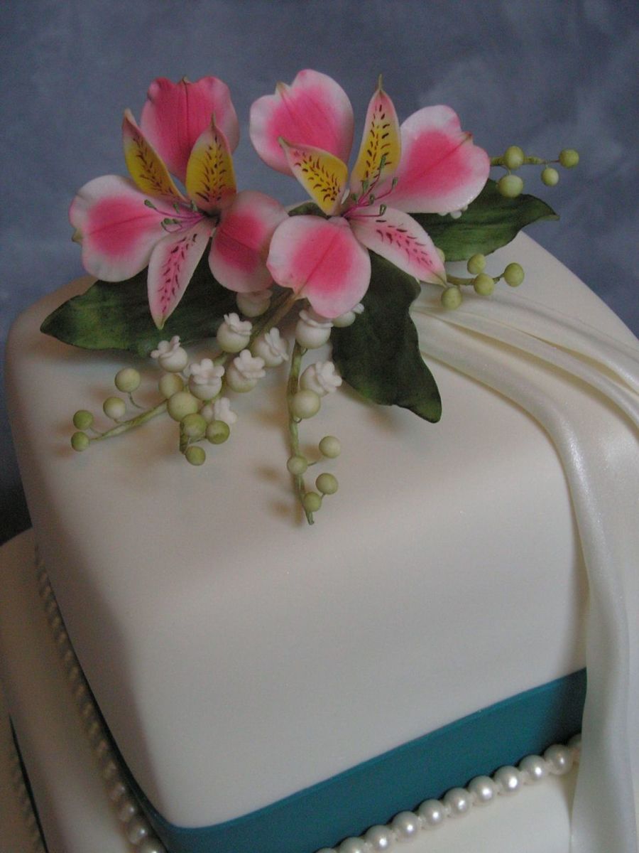 Hi sugar friends! This one is just a simple drape..... but it looked so nice I wanted to share it with you all :-) The flowers are gp, I will post a close shot of those next. Band are my chocolate pearl clay, the drape is my chocolate fondant. Pearls are my chocolate pearl clay (YUM!). Thanks for peeking! Jennifer Dontz - Traveling Sugar Art teacher - NEW! 2 Fondant DVD's - Online store: www.jenniferdontz.com