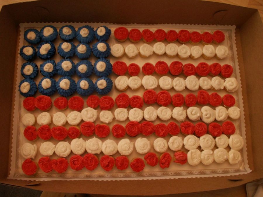 I made these mini cupcakes to take to work for the holiday. The blue ones are chocolate w/BC, then red ones are butter cake w/BC and the white ones are lemon cake w/crusting cream cheese icing. They are in a full sheet box, and everyone at work LOVED them! Now, if only they would order a cake...