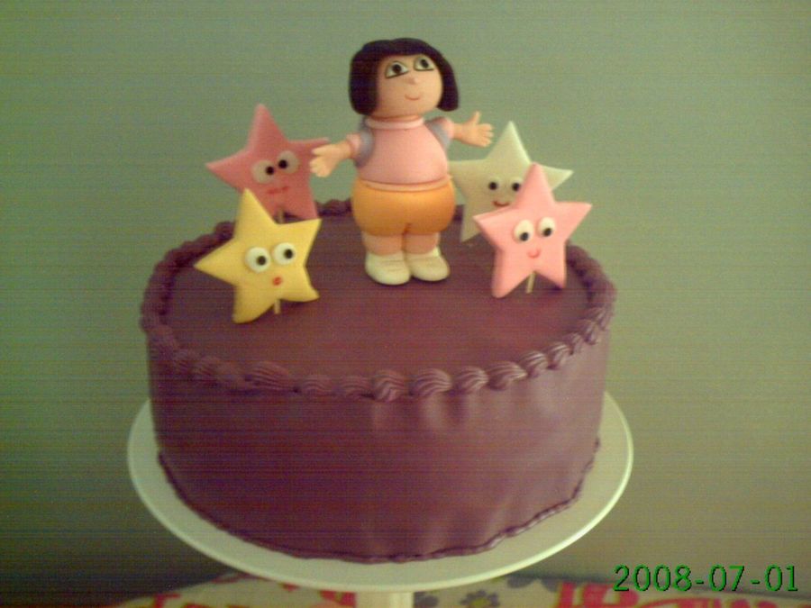 This is for my other daughter to her second birthday. dora and star are fondant, and the the frosting is chocolate. shells too.