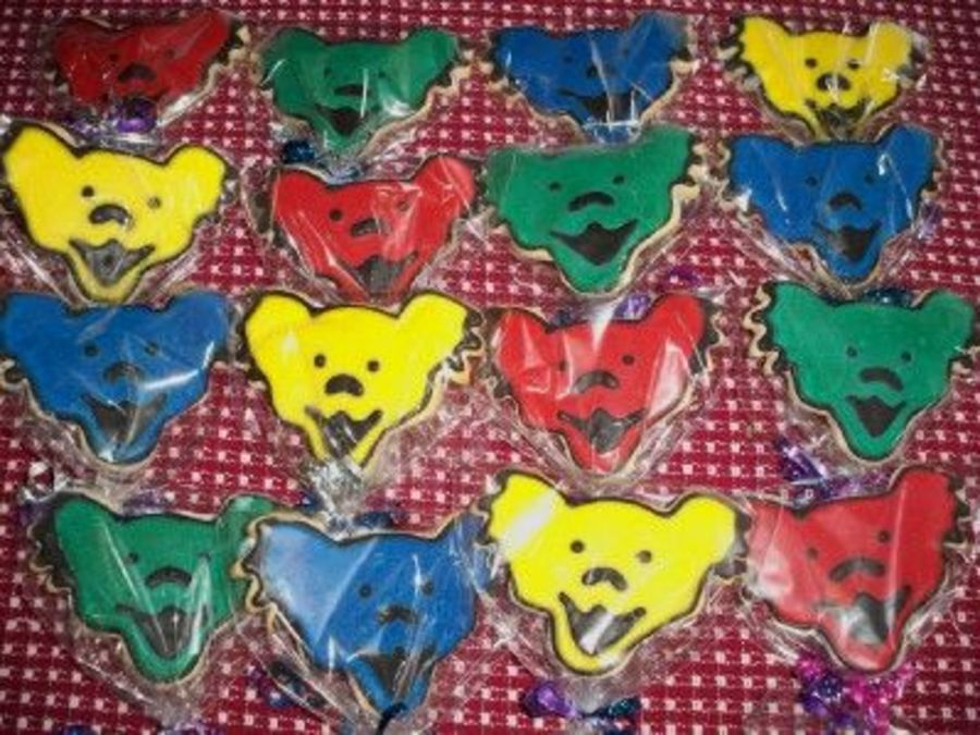 I made these for my DeadHead brothers birthday. Got the cookie cutter off eBay. Toba's glaze used to decorate. Forgot to take a photo before I packaged them.