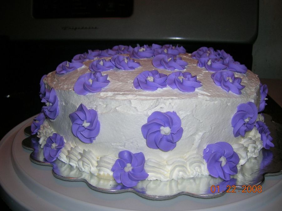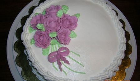 Three milks cake with stabilized whipped cream, decorated with royal icing flowers