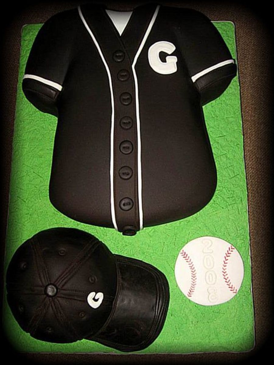 This cake was created for a Little League Team BBQ and Trophy party. The cake was carved from a 1/2 sheet cake. Chocolate Devils' Food with Creamy Raspberry Filling. Covered and detailed with Chocolate MMF colored black.