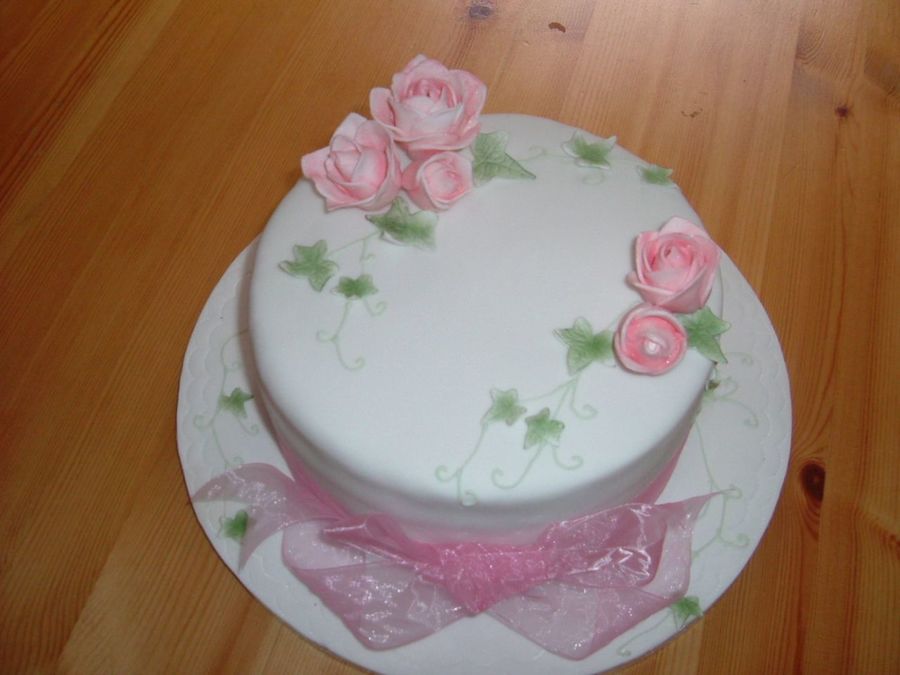 Chocolate cake covered with fondant with gumpaste decorations Any help with my roses will be gratefully received