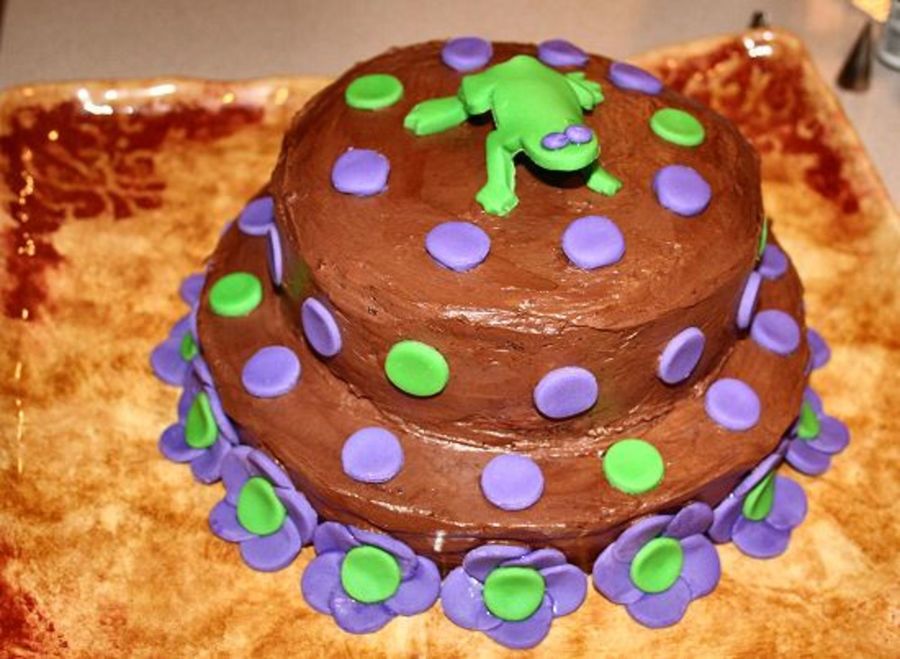 Cake I helped a friend make last year for her daughter. Purple and frogs held special significance for them. Chocolate cake, chocolate BC with fondant decorations.