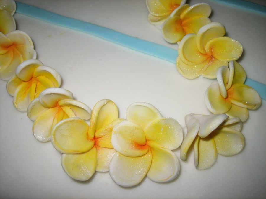 plumeria blossoms made from gumpaste and dusted with petal dust