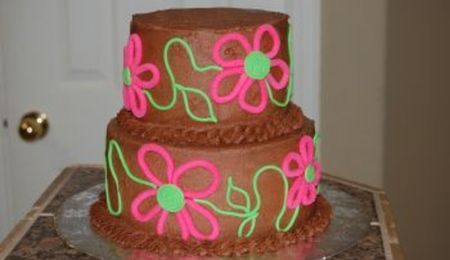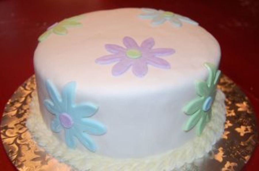 Coconut cake with cocnut buttercream filling and piping. Covered in fondant with fandant flowers.