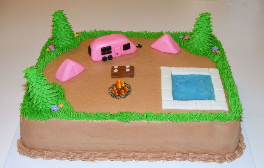 BC with MMF details. Trees are ice cream cones (cut to size) covered in BC. Pool water is blue BC with a thin layer of piping on top.