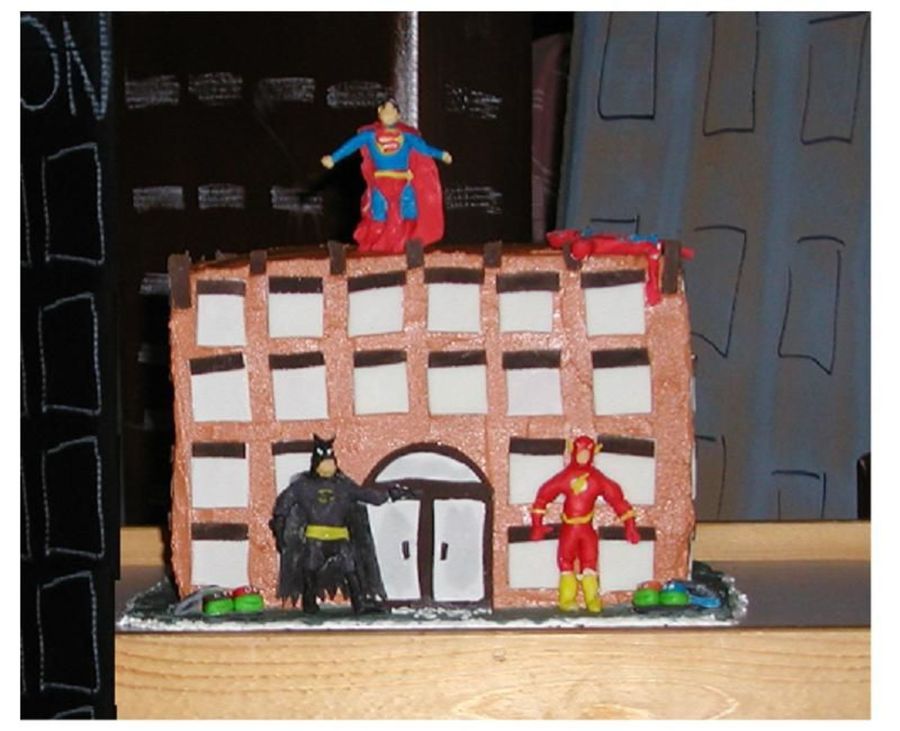 My 4 yrs old wanted a batman cake, we searched CC for inspiration and came upon a Superhero building by "awsus", so here is my version. I really worked at the fondant figures and they are not perfect but I learned a lot. At the party we had Mr. Freeze steal the cake. So I had to move it a bit and Batman lost 1 arm, Superman lost 1 hand, Spidermanlost both legs and 1 arm, and Flash lost both feet. The TMNT were just fine. Thank you so much "awsus" for the inspiration. Thanks for looking.