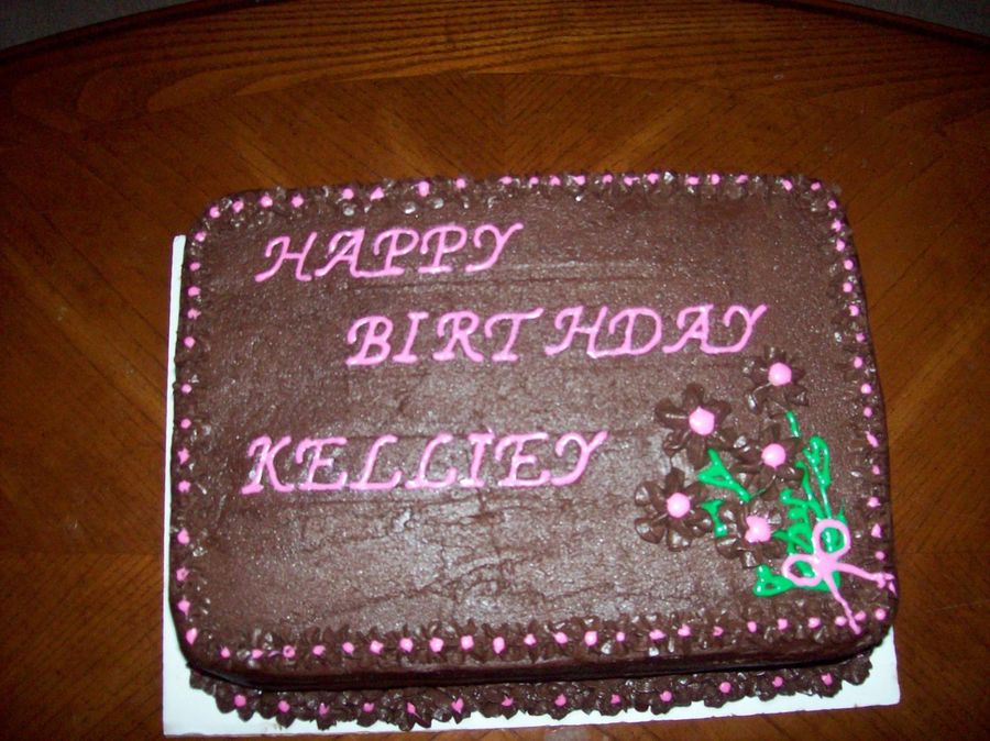 This is a new recipe I have come up with. It is a Butter Pecan cake with toffee chips added. I then made a Caramel-Toffee filling and iced the whole thing with Chocolate Buttercream. The decorations are self explanitory.