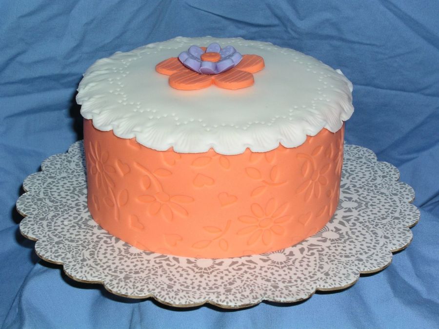 Used the new impression mat and fondant press from wilton for this cake. Really like the crisp impression it gives. Not too fond of the colors, but it wasn't my choice. Fun to play around with, though.