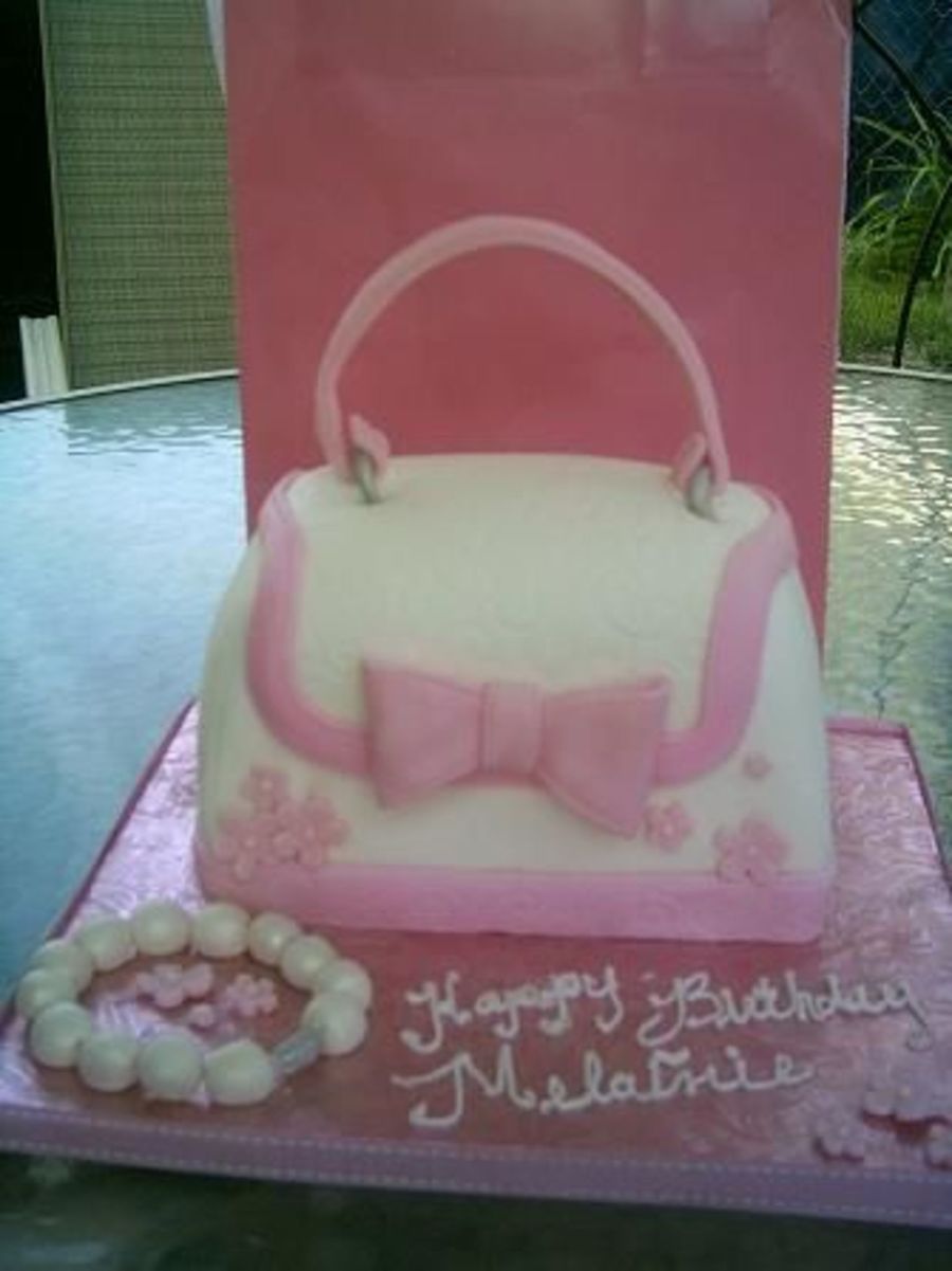 1st appempt at a purse. It was fun to make, but fondant still baffels me. Need to practice. I made it for my daugthers birthday which was fitting as she is the purse Queen. White cake with raspberry mousse filling and buttercream under the fondant.