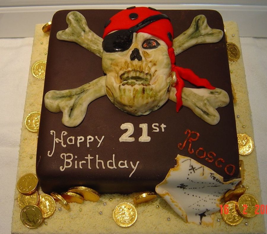 This is a cake I made for a friends 21st. It is a mud cake with chocolate fondant icing. Made an icing mold of a skull, then when it hardened made fondant skull then hand painted it to get an aged look to the bones, sand is crumbled shortbread, money was only ready made item added everything else was made from fondant - thanks for looking