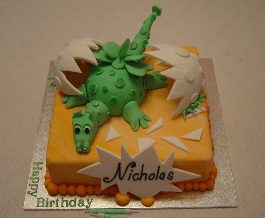 Made this for my Grandson, - First time making a dragon, I think he needs a bit of fine tuning but Nicholas loved it and it was fun to make. It is a chocolate mud cake with fondant icing. Thanks for looking