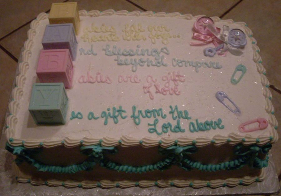 This was for a shower that they didn't know what the baby was. This is also a cake that I had seen on this site. I hope I have done it justice. Thanks for the great ideas and thanks for looking!