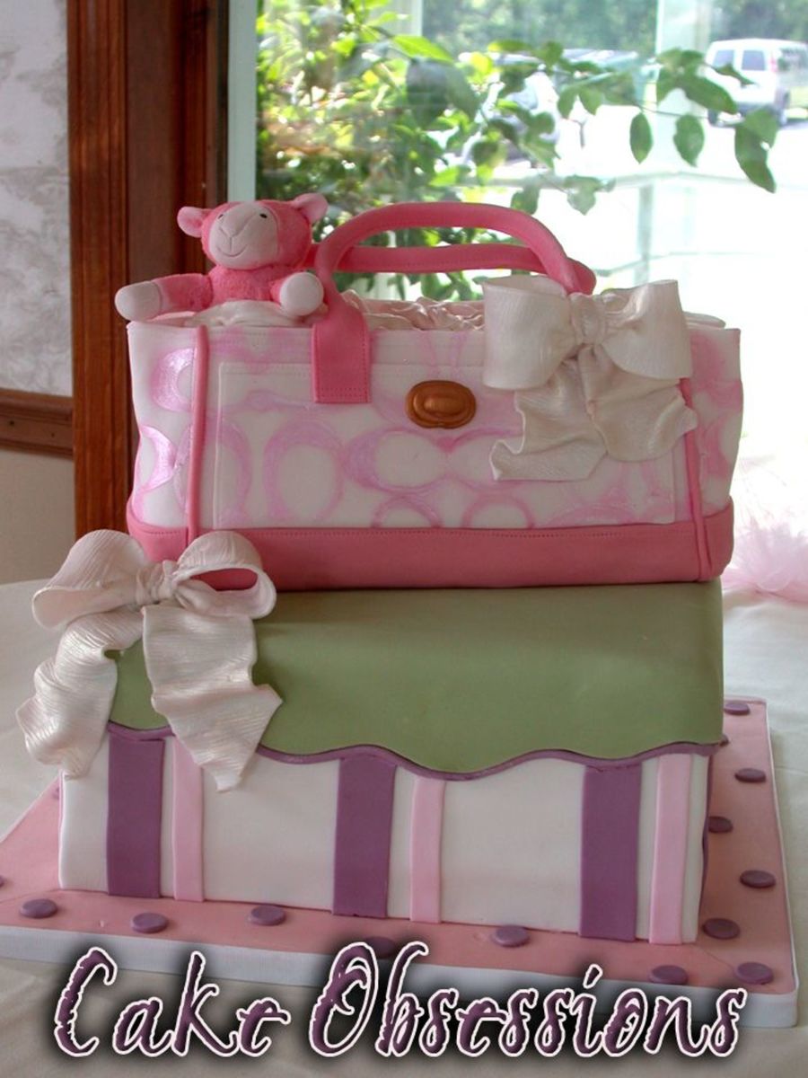 This cake was for CC's heavenlycakes! She made my baby shower cake last year and drowve down to NYC and this year it was my turn to drive up to Albany! This mother to be however wanted the shower to be all about her, so I created a version of a Coach bag to suit the occasion. She is a Coach fanatic and I'm sure her handbags will be carrying baby things in the near future! Lulu the lamb was made of fondant, and dusted with tinted cornmeal.