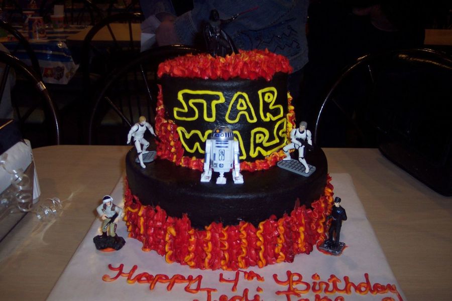 My son loves star wars so Jake and myself looked through all the cc star wars cakes and he picked his favorites. All buttercream. We bought the pastic figures. We had his party at Chuck E Cheese. I got alot of attention from the people there when I walked in with the cake. I felt so bad for the kids who had supermarket cakes, sorry :) My mom always made homemade cakes and never who have thought of buying a store one. I am a cake snob I will admit!