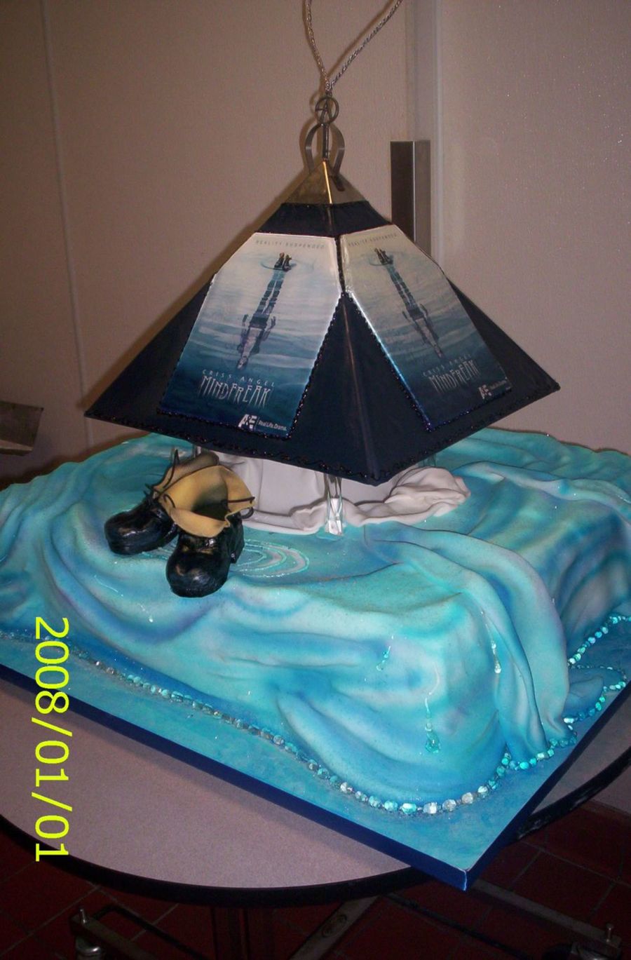 Fondant, sugar, welded metal. Middle of bottom cake will be filled with dry iceand blinking lights