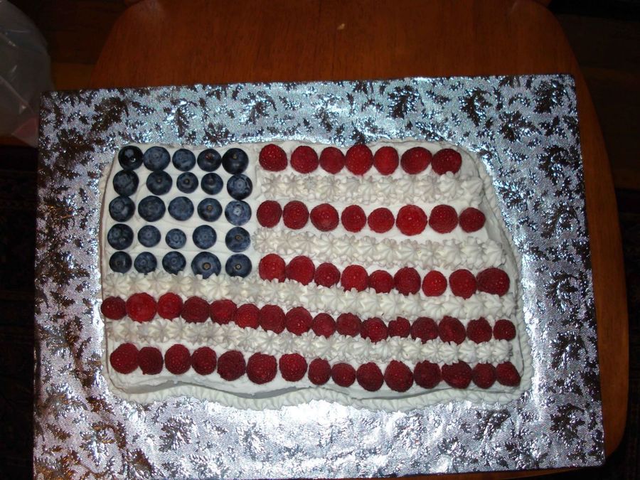 Flag pan, blueberries and raspberries