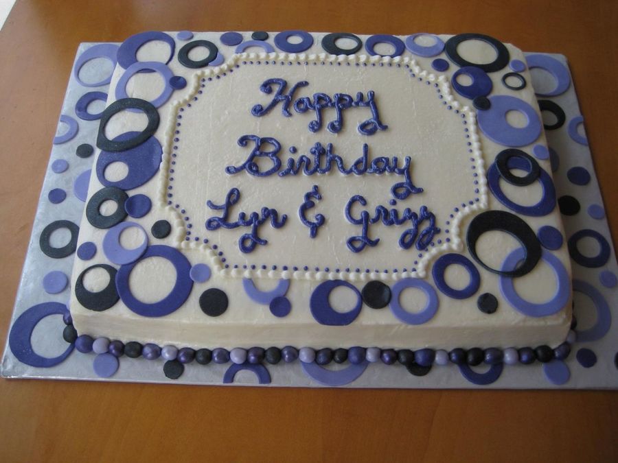 This was done to go with a anniversary cake for the same party. She wanted both cakes to tie in with each other. She wanted to have the fondant circles for the birthday cake and something "pretty" for the anniversary cake. So this is what I came up with. She was really happy. 11x15 sheet cake, chocolate, with buttercream, and fondant circles. Thank you for looking!