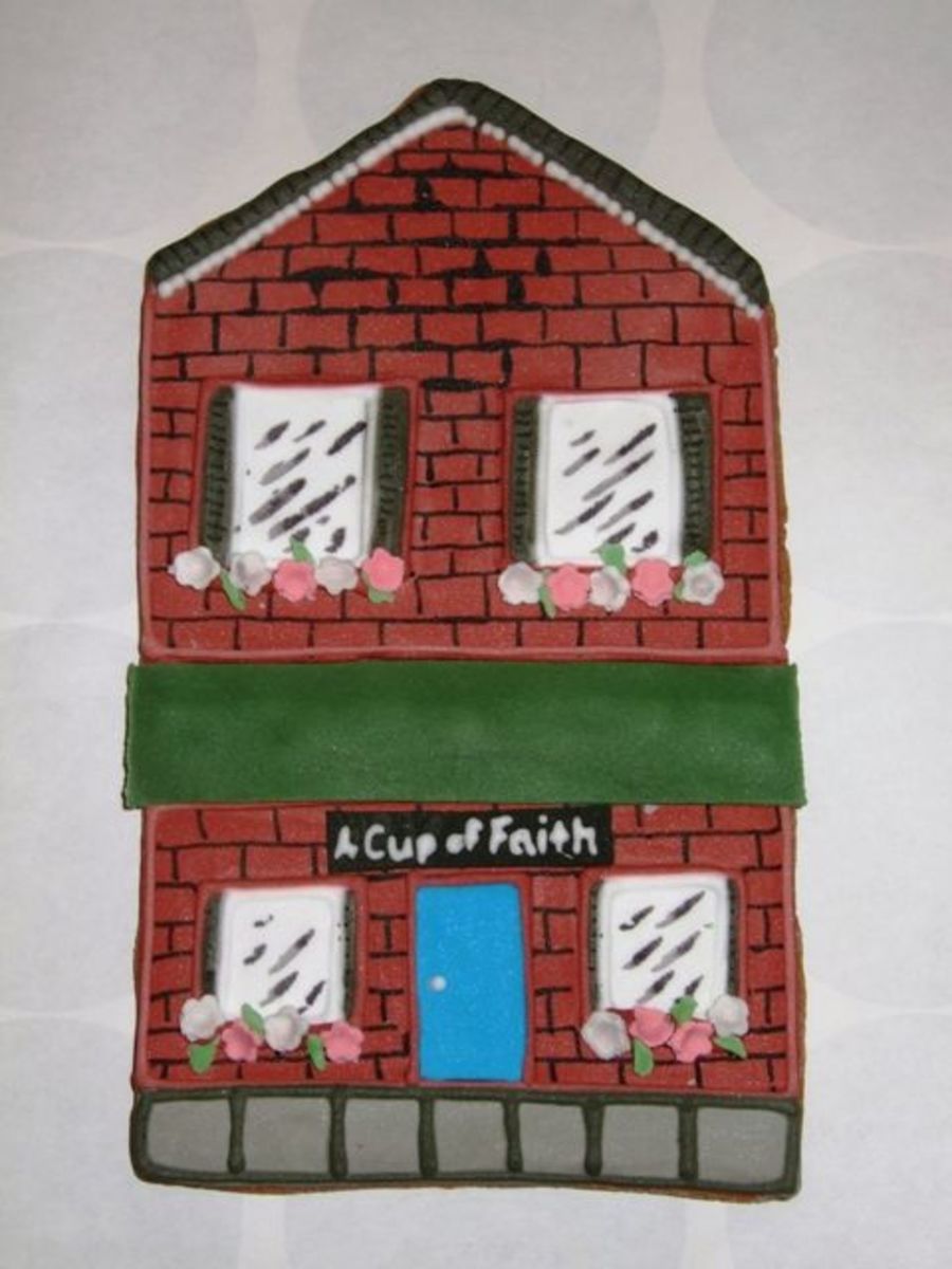 Make-believe storefront for a friend who is opening up a coffee shop. sugar cookie, RI and gumpaste accents. TFL!