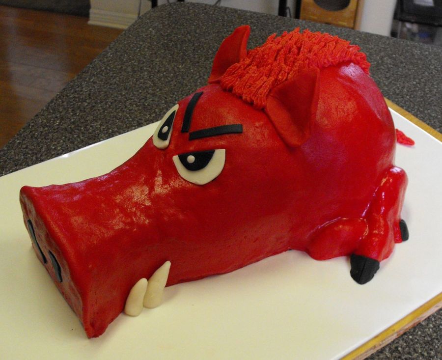 Carved choc cake out of layers and WM pan stacked on 2" layer. BC layer then covered in MMF. Eyes, ears, tail and tusks are gumpaste.