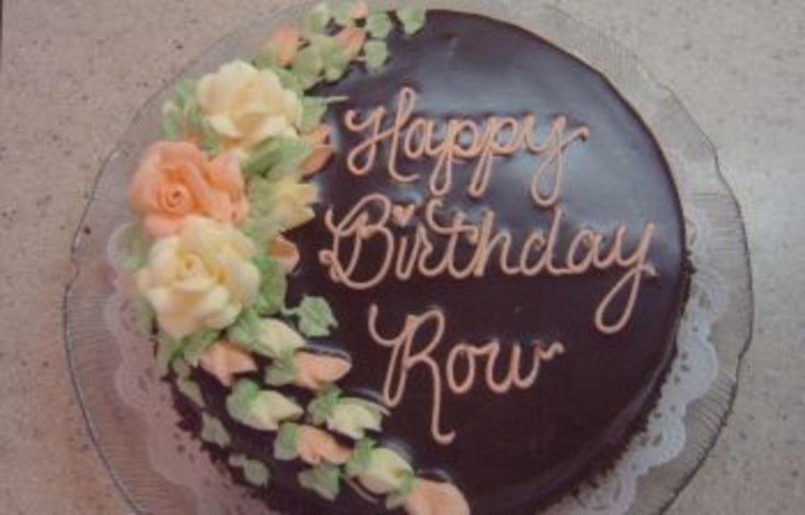 birthday cake.. covered in ganache.. buttercream flowers